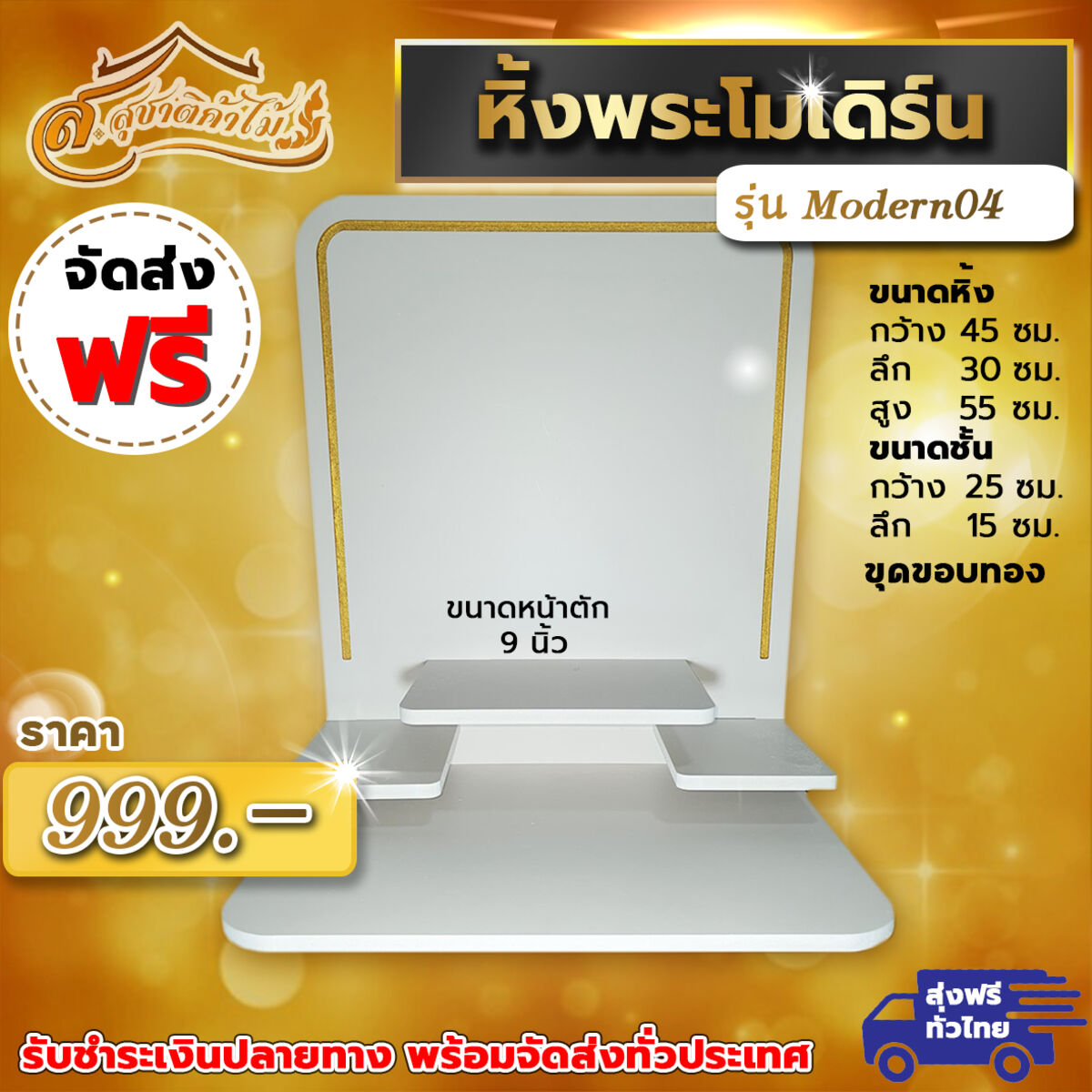 หิ้งพระติดผนัง สไตล์โมเดิร์น เรียบหรู ดูแพง ลวดลายวิจิตร เหมาะกับบ้าน คอนโดสมัยใหม่ทีต้องการกลิ่นไอความโมเดิร์นและหรูหราใช้วางพระก็ดูดี สีขาวช่วยให้ห้องดูสะอาดตา ทำความสะอาดก็ง่ายซื้อใช้เอง หรือซื้อฝากเพื่อนพี่น้องก็เป็นที่ถูกใจสินค้าผลิตจากจากพลาสวูดเกรดคุณภาพดี🏠🏡🏢🏬