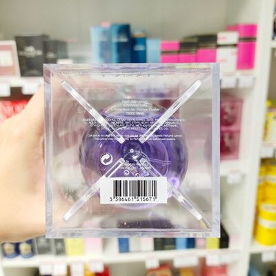 รูปทรงเป็นเอกลักษณ์ ประดับอัญมณีสีม่วงที่จุกขวด พิมพ์โลโก้สีทองที่ด้านหน้าขวด