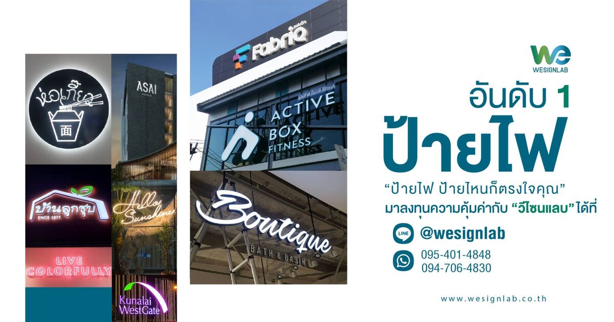 บริษัทรับทำป้าย Wesignlab เราเป็นผู้นำ ร้านป้าย ที่มีประสบการณ์ด้านนี้โดยเฉพาะมานานกว่า 10 ปี การันตีด้วยผลงานโครงการทั่วประเทศมากกว่า 100 โครงการ เพราะเราเชื่อว่ารสนิยมและเอกลักษณ์ของร้านสามารถบ่งบอกความเป็นตัวตนผ่านป้ายได้ ถ้าคุณอยากแตกต่างมาหาเราที่นี่ รับทำป้ายทุกประเภท เราไม่ได้เป็นแค่ร้านทำป้ายแต่เราเป็นอีกหนึ่งที่ปรึกษาที่จะเข้ามาสรรค์สร้างร้านของคุณให้โดดเด่นขึ้นอีกระดับ