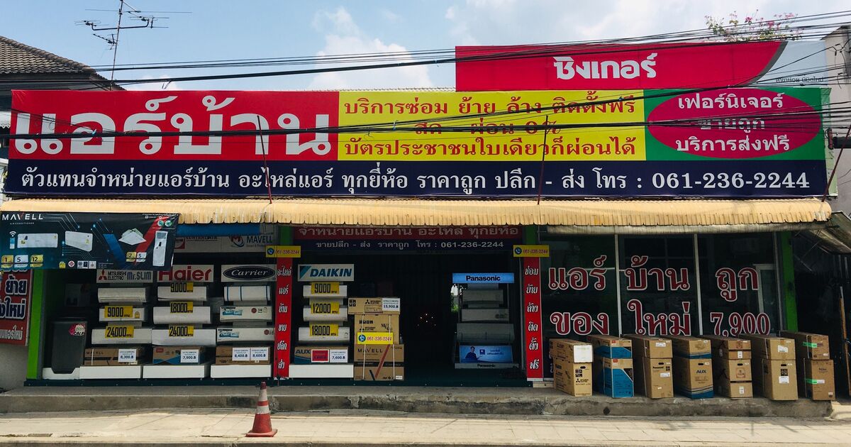 ร้านทรัพย์เจริญแอร์แอนด์เซอร์วิส ตัวแทนจำหน่ายแอร์บ้านทุกยี่ห้อ ยินดีให้บริการ ซ่อมแอร์ ย้าย ล้าง ติดตั้งใหม่ และให้คำปรึกษาเรื่องแอร์บ้าน จบได้ทุกปัญหาเรื่องแอร์บ้าน ด้วยช่างที่มีประสบการณ์ เน้นคุณภาพ และราคาเป็นกันเอง แจ้งประเมินราคาก่อนให้บริการทุกครั้ง สนใจติดต่อสอบถามได้ที่