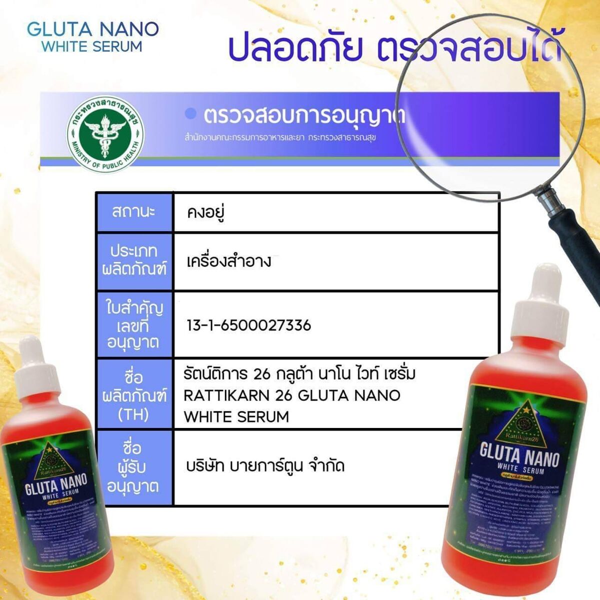 ปราศจากสารอันตราย มีเลขจดแจ้ง อย. เรียบร้อย