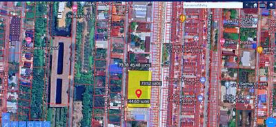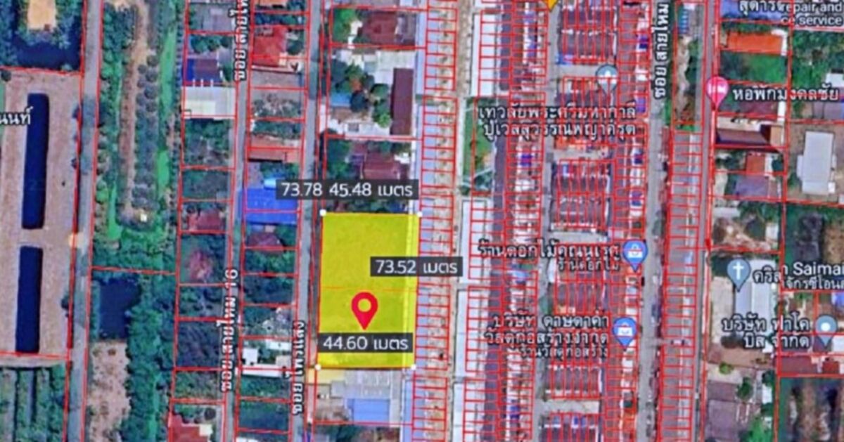 · ที่ดินรูปสี่เหลี่ยมพื้นผ้า กว้าง 74 เมตร ลึก 45 เมตร