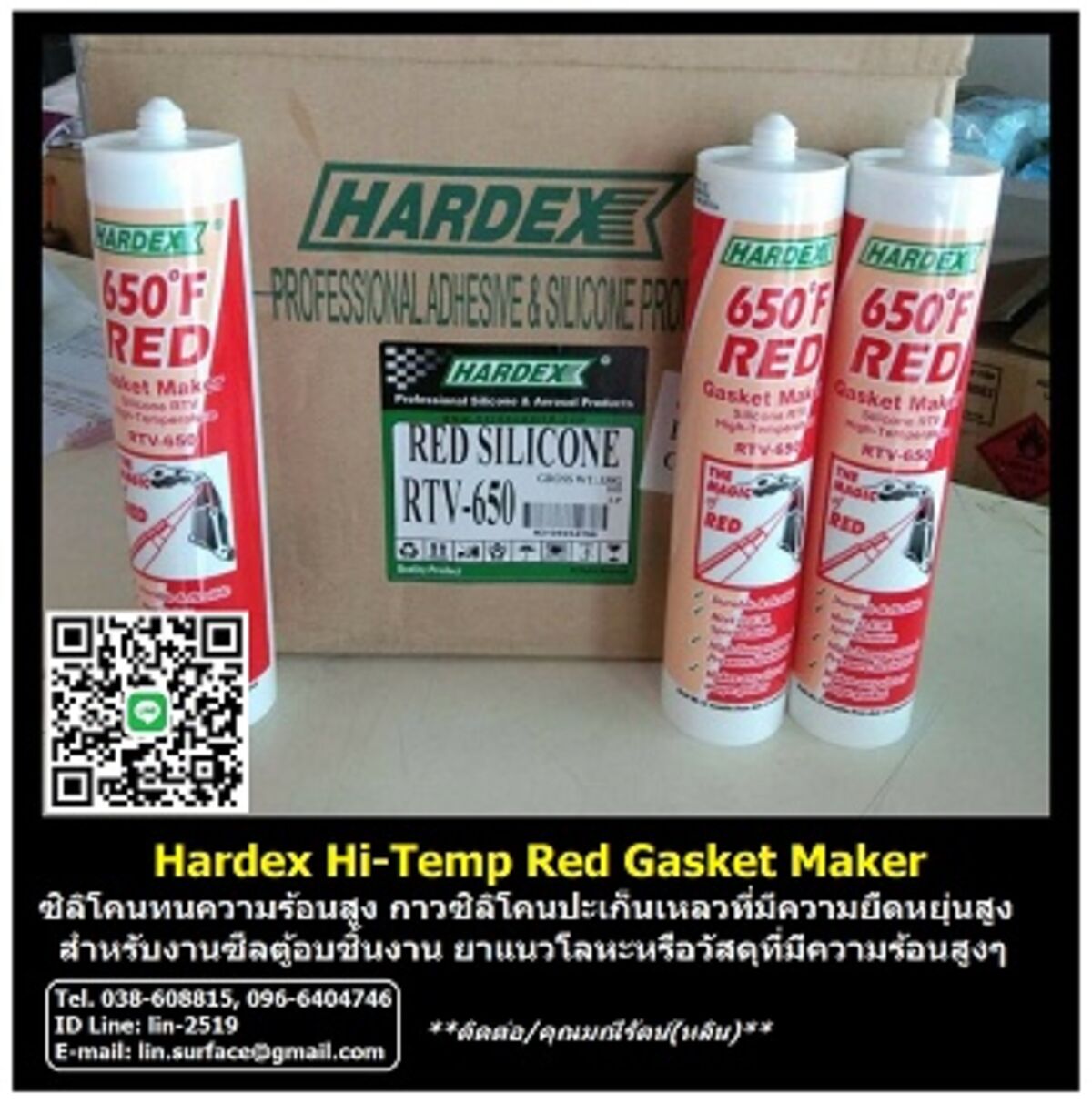 Hardex Hi Temp Red ซิลิโคนทนความร้อนสูง กาวแดง ใช้ซีล ยาแนวรอยต่องานที่มีความร้อนสูง ตู้อบสี