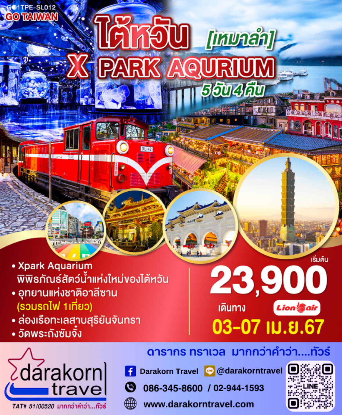 ทัวร์ไต้หวัน X Park Aqurium 5 วัน 4 คืน (เหมาลำ)