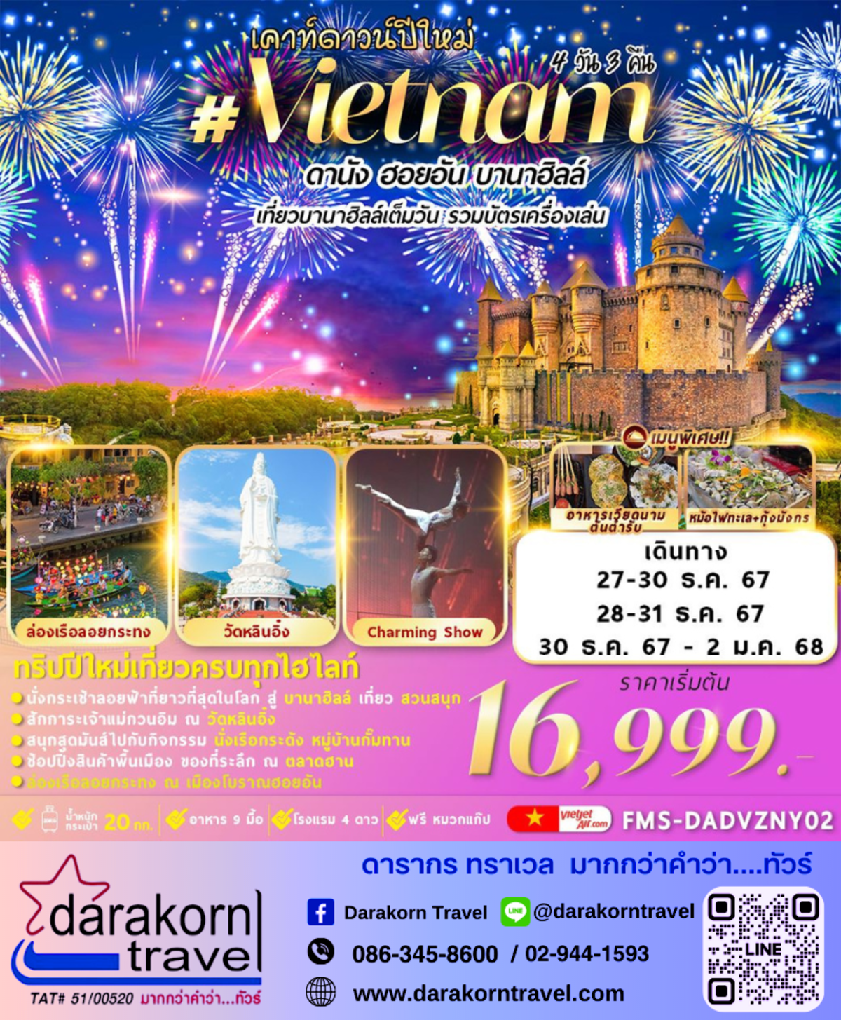 ทัวร์เวียดนาม เคาท์ดาวน์ปีใหม่ ดานัง ฮอยอัน บานาฮิลล์ 4วัน 3คืน