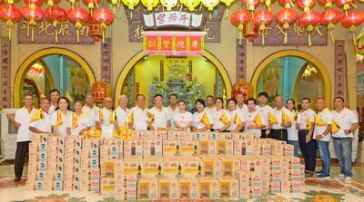 ทั้งนี้ทางบริษัทฯ ได้ส่งตัวแทนไปมอบผลิตภัณฑ์ เงินสนับสนุนทำโรงทาน และสื่อต่างๆ ให้กับโรงเจ ศาลเจ้า และมูลนิธิฯ รวม 35 แห่ง 6 จังหวัด ดังนี้ จ.สมุทรสาคร 9 แห่ง ได้แก่ ศาลเจ้าพ่อกวนอู โรงเจปุนเถ้ากง ท่าฉลอม ศาลเจ้าแม่จุ๊ยป๋วยเนี้ย ศาลเจ้าแม่กวนอิมพันมือ คลองจาก โรงเจไท้เอ็กตั๊ว(องค์พ่อสำเร็จ) มูลนิธิการกุศลสมุทรสาคร ศาลเจ้าพ่อหลักเมือง ศาลเจ้าปุ่นเถ้ากง มหาชัย และอุทยานพระโพธิสัตว์กวนอิม จ.สมุทรสงคราม 4 แห่ง ได้แก่ มูลนิธิสว่างเบญจธรรม(เม่งกักเซี่ยงตั๊ว) โรงเจเง็กเซ็งซำเป้าเก็งเต็ง อัมพวา ศาลเจ้านาจาซาไท้จื้อเอี้ยกง และศาลเจ้าอาม่า ตลาดเก่าแม่กลอง จ.ฉะเชิงเทรา 6 แห่ง ได้แก่ วัดจีนประชาสโมสร(เล่งฮกยี่) โรงเจวัดโสธร สมาคมสงเคราะห์การกุศลฉะเชิงเทรา โรงเจเม้งเต็กเจตั๊ว มูลนิธิสว่างศรัทธาธรรม(วิหาร 8 เซียน แปดริ้ว) และโรงเจศาลเจ้าพ่อโกมินทร์ บางปะกง จ.นครสวรรค์ 3 แห่ง ได้แก่ ศาลเจ้าพ่อเจ้าแม่หน้าผา ศาลเจ้าพ่อโกมินทร์ และมูลนิธิเจ้าพ่อ-เจ้าแม่ศูนย์การค้านครสวรรค์ จ.ชลบุรี 10 แห่ง ได้แก่ มูลนิธิสว่างบริบูรณ์ธรรมสถาน พุทธสมาคมสว่างผลหนองมน(เม่งก้วยเซี่ยงตั๊ว) ศาลเจ้าหน่าจาซาไท้จื้อ โรงเจเปาฮกตั๋ว(โรงเรียนวุฒิวิทยา) ศาลเจ้าพระแม่น่ำไฮ้กวนอิม บ้านสวน ศาลเจ้าแม่เขาสามมุข สมาคมพุทธมามกสว่างประทีปธรรมสถาน โรงเจมูลนิธิเกาะโพธิ์โพธิญาณ(เจียวฮกตั๊ว) พุทธสมาคมเพียวเยี้ยงไท้ ศรีราชา และมูลนิธิศาลเจ้าเก่งเยี่ยงไท้ โป๊ยเซียนโจวซือ บางพระ และจ.สมุทรปราการ 3 แห่ง ได้แก่ มูลนิธินาคราชโยธาชัย(จี่เกี่ยมเกาะ) โรงเจฮะหงีเข่งฮุกตึ้ง(ข้างศาลเจ้าพ่อทัพ) และโรงเจท่งเสียง