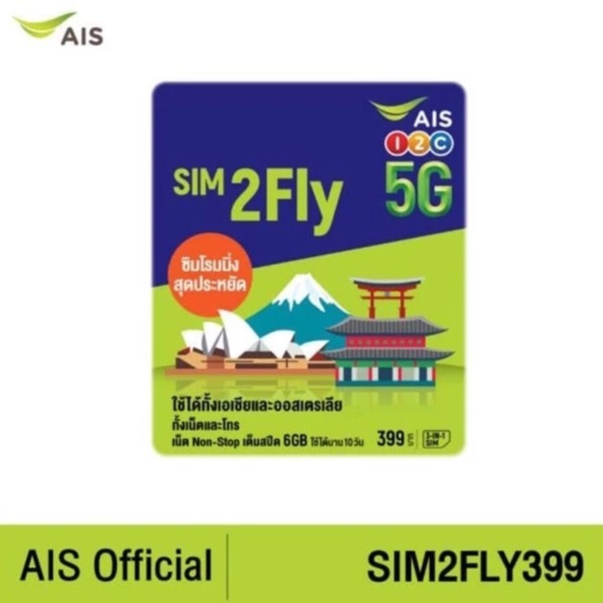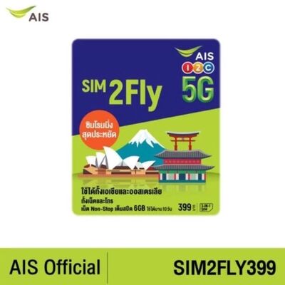 AIS SIM2Fly 5G เอเชียและออสเตรเลีย 6GB 10 วัน เน็ตใช้ในไทย 500MB ซิมท่องเที่ยว