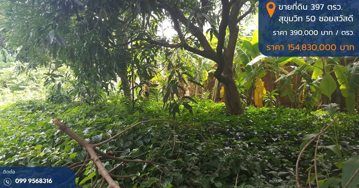 ขายที่ดิน 397 ตรว., ขายที่ดิน สุขุมวิท 50, ขายที่ดิน สุขุมวิท 50 ซอยสวัสดี, ขายที่ดิน พระโขนง กรุงเทพ, ขายที่ดินเขตคลองเตย กรุงเทพ