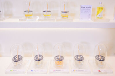 พื้นกระเบื้องที่โค้งวนถูกออกแบบให้เหมือนเส้นทางในสวนเมืองนอก เพื่อพาผู้คนค่อย ๆ เดินเข้าสู่บรรยากาศใหม่ บรรยากาศที่กาลเวลาเดินช้าลง และทุกประสาทสัมผัสเปิดรับพลังแห่งกลิ่นหอม