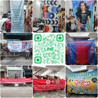 • ทำป้ายผ้าแคนวาสขนาดใหญ่ ป้ายผ้าสามารถเย็บต่อกันให้เป็นผืนใหญ่ได้