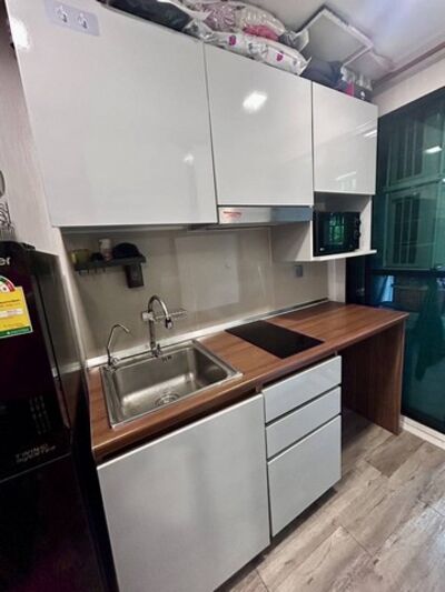 ห้องครัวแบ่งโซน แถม เคาน์เตอร์ครัวบนล่าง เตาไฟฟ้า เครื่องดูดควัน