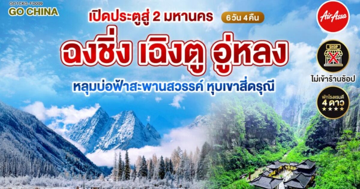 ทัวร์จีน เปิดประตูสู่ 2 มหานคร ฉงชิ่ง เฉิงตู อู่หลง หลุมบ่อฟ้าสะพานสวรรค์ หุบเขาสี่ดรุณี 6วัน 4คืน