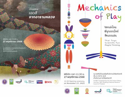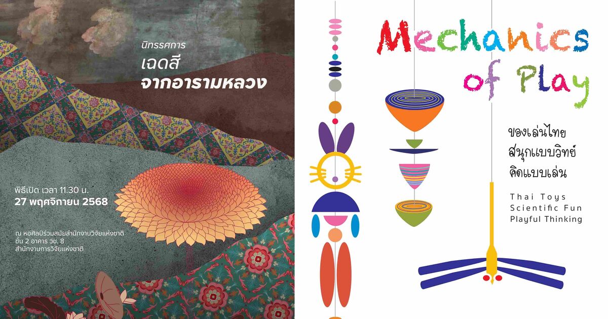 ขอเชิญผู้สนใจร่วมชมนิทรรศการ “เฉดสีจากอารามหลวง” และ “ของเล่นไทย สนุกแบบวิทย์ คิดแบบเล่น” ร่วมพิธีเปิดในวันที่ 28 ตุลาคม 2568 ณ หอศิลป์ร่วมสมัย สำนักงานการวิจัยแห่งชาติ ชั้น 2 อาคาร วช. 8 ภายในงานมีกิจกรรมพิเศษและไอศกรีมเฉดสีวัด จาก Royal Ice Cream ให้ร่วมสนุกอีกด้วย