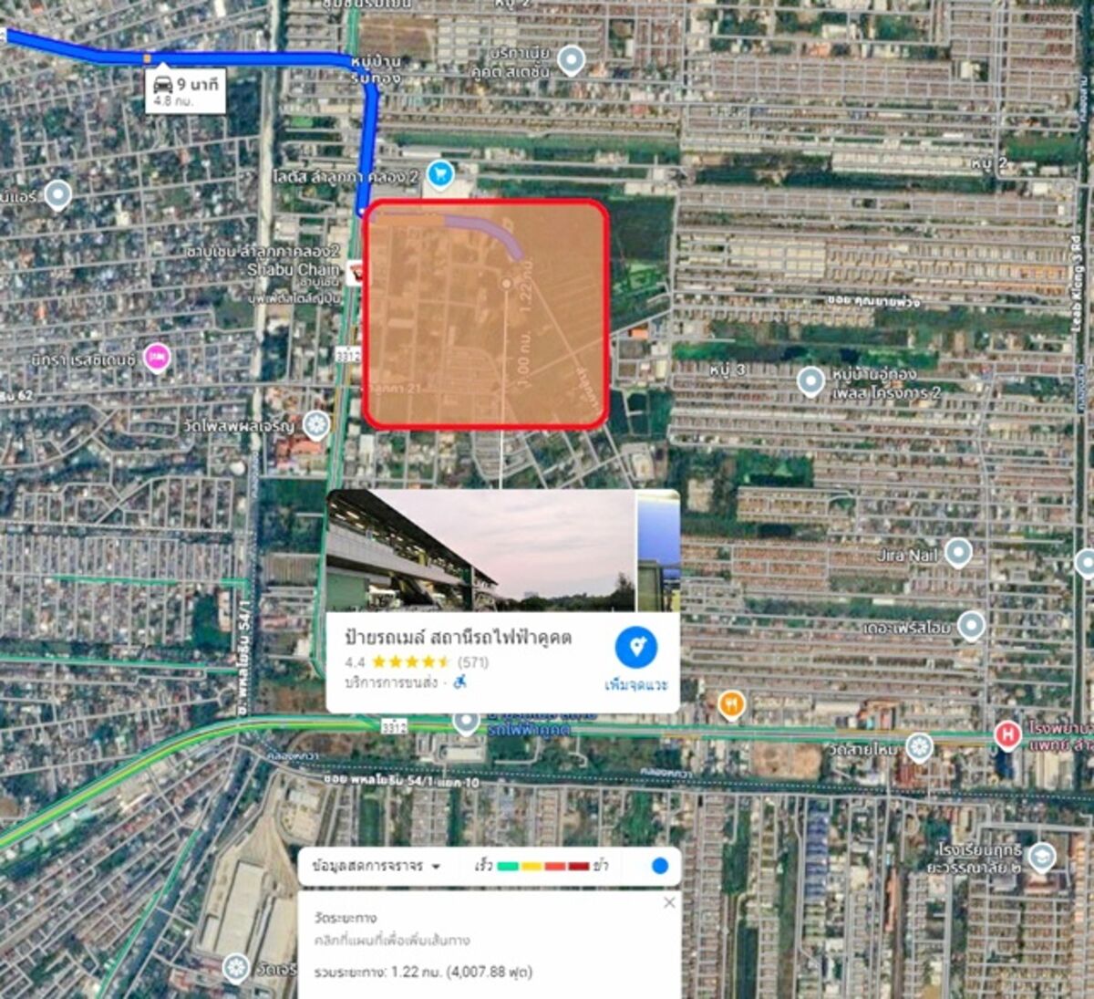 โชว์รูม ร้านอาหาร ที่จอดรถ 2ไร่ 1งาน BTS คูคต 1.7กม. ให้เช่าที่ด