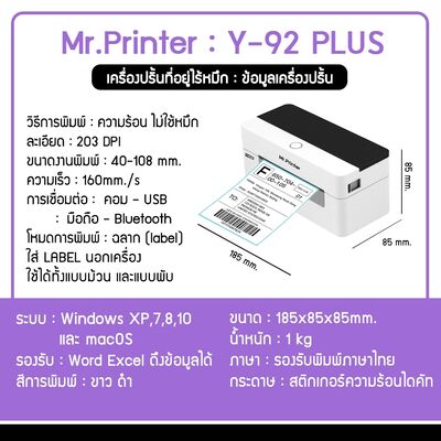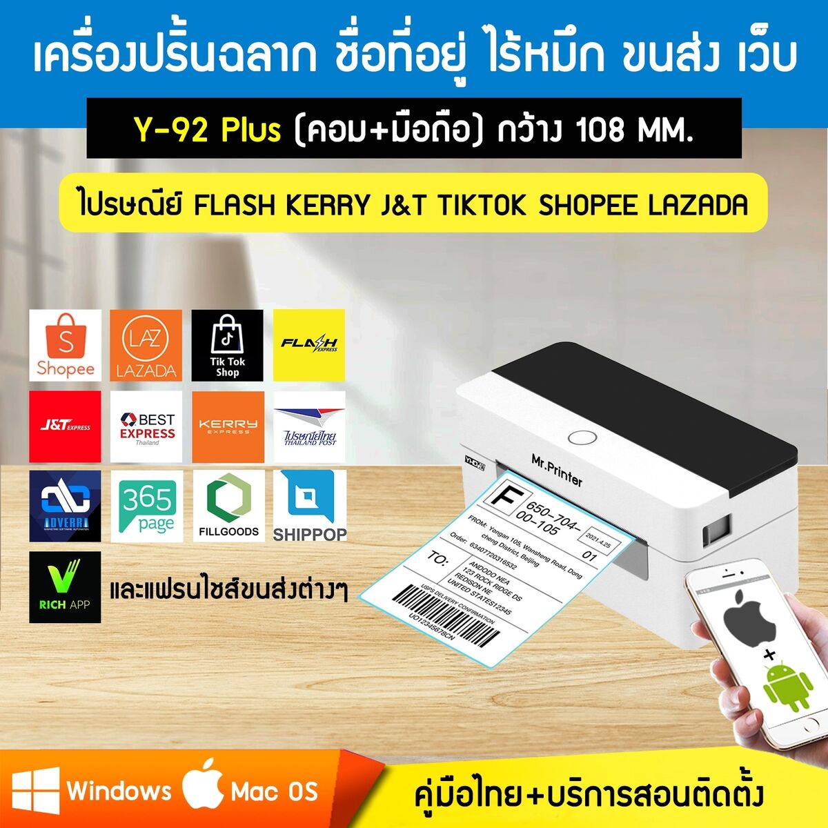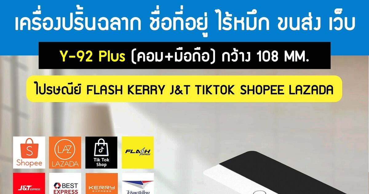สำหรับใครที่สนใจเครื่องปริ้นที่อยู่ไร้หมึก ดี และคุ้มค่ากับการใช้งาน แอดมินแนะนำ เครื่องปริ้นรุ่น Y92 PLUS รุ่นนี้เลยค่ะ รุ่นนี้ สามารถใช้ได้ทั้งทางคอมพิวเตอร์ และมือถือเลยค่ะ มือถือรองรับ IOS และ ANDROID คอมรองรับทั้ง MAC และ WINDOWS เลยค่ะ มีหน้ากว้างถึง 40-108 mm รองรับการปริ้นแพตฟอร์ม Tiktok Shopee Lazada และ ขนส่ง J&T FLASH KERRY ไปรษณีย์เลยค่ะ หรือจะปริ้นฉลากออกแบบตามต้องการก็ได้เช่นกันค่ะ