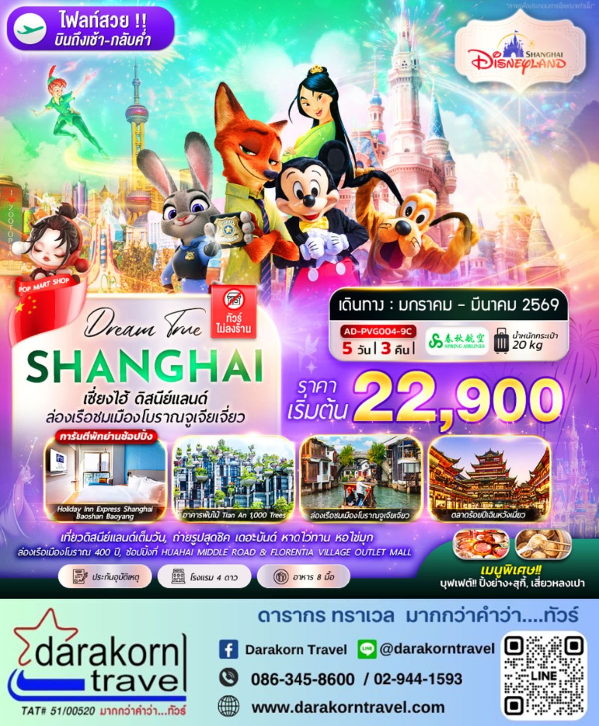 ทัวร์จีน ดิสนีย์แลนด์ ล่องเรือชมเมืองโบราณจูเจียเจี่ยว 5วัน 3คืน