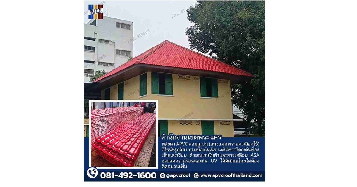 #APVCBESSER #หลังคาAPVC #หลังคาลอนสเปน #หลังคาเย็น #หลังคาเงียบ #หลังคาสำนักงานเขต #สำนักงานเขตพระนคร #วัสดุก่อสร้าง #รีโนเวทหลังคา #หลังคากันร้อน #BESSERROOF #APVC #เมทัลชีท #หลังคาโรงรถ #กันแดดกันฝน