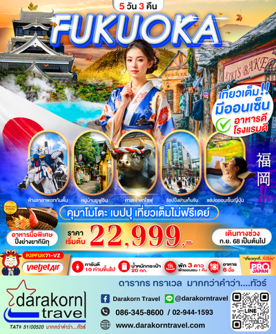 ทัวร์ญี่ปุ่น FUKUOKA KUMAMOTO BEPPU 5วัน 3คืน