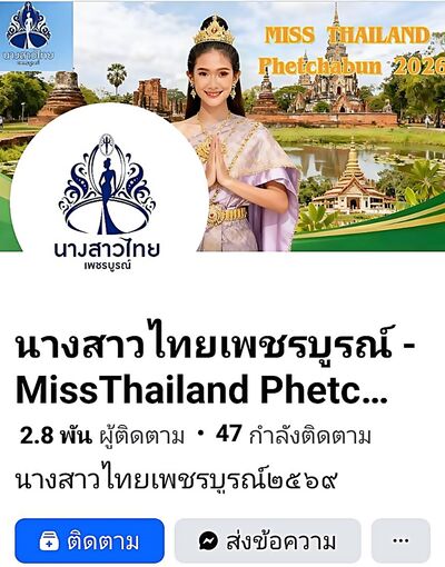 ติดต่อสอบถามข้อมูลเพิ่มเติม: คุณณัฐกัญภรณ์ ธนันพัฒนวงษ์ ผู้ถือลิขสิทธิ์กองประกวดนางสาวไทยเพชรบูรณ์ 2569
