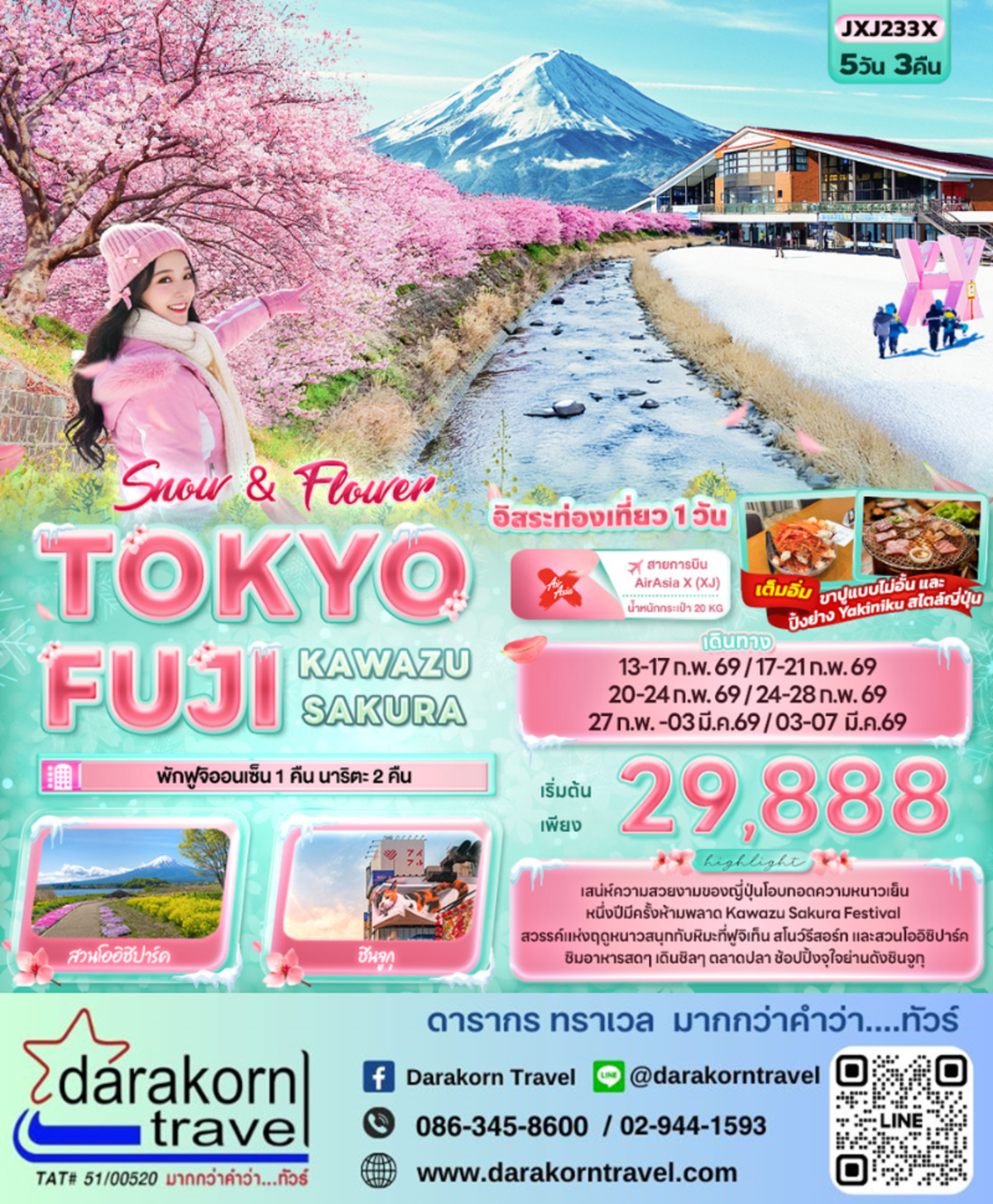 ทัวร์ญี่ปุ่น Snow Flower TOKYO FUJI KAWAZU SAKURA 5วัน 3คืน