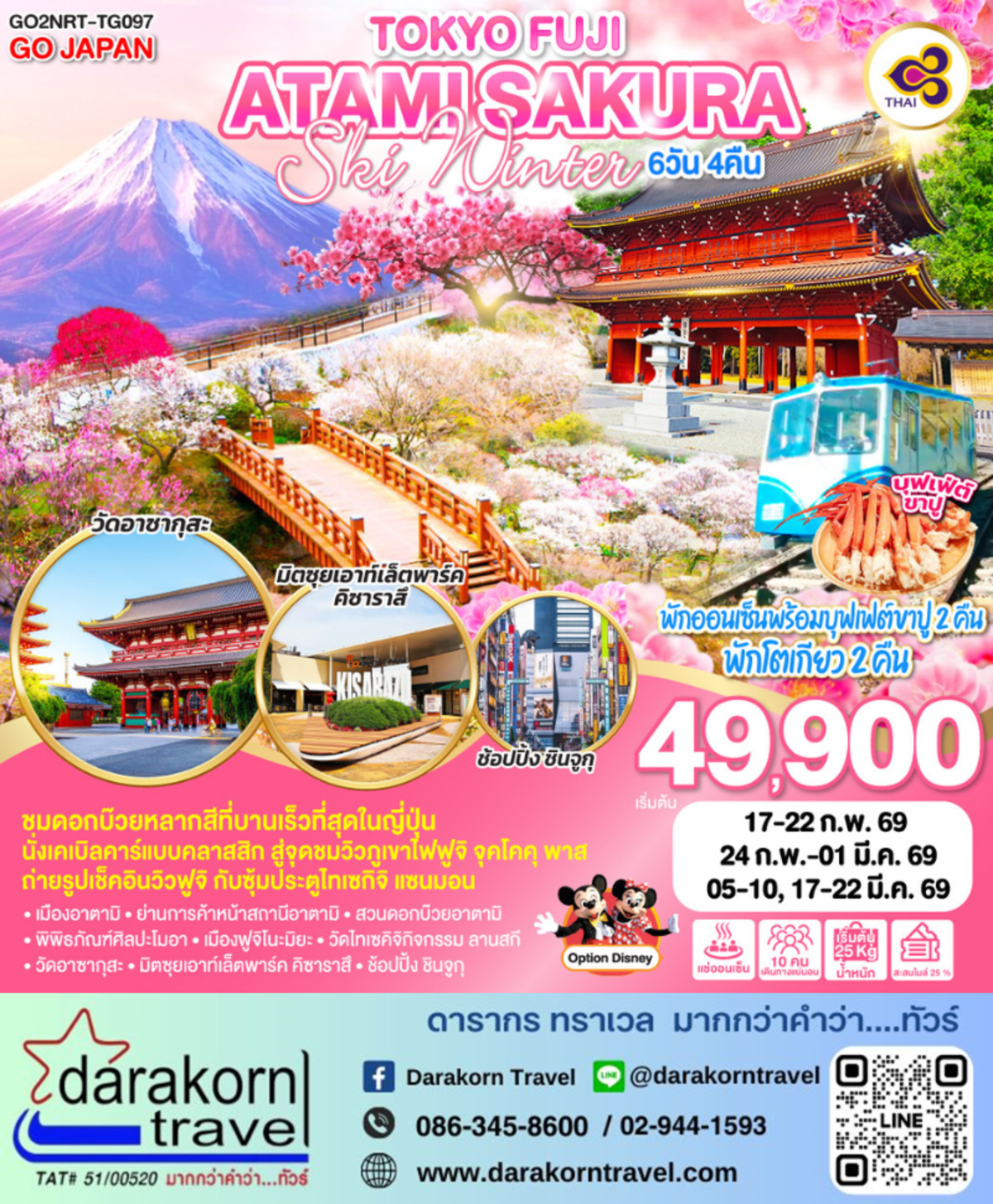 ทัวร์ญี่ปุ่น TOKYO FUJI ATAMI SAKURA SKI WINTER 6วัน 4คืน