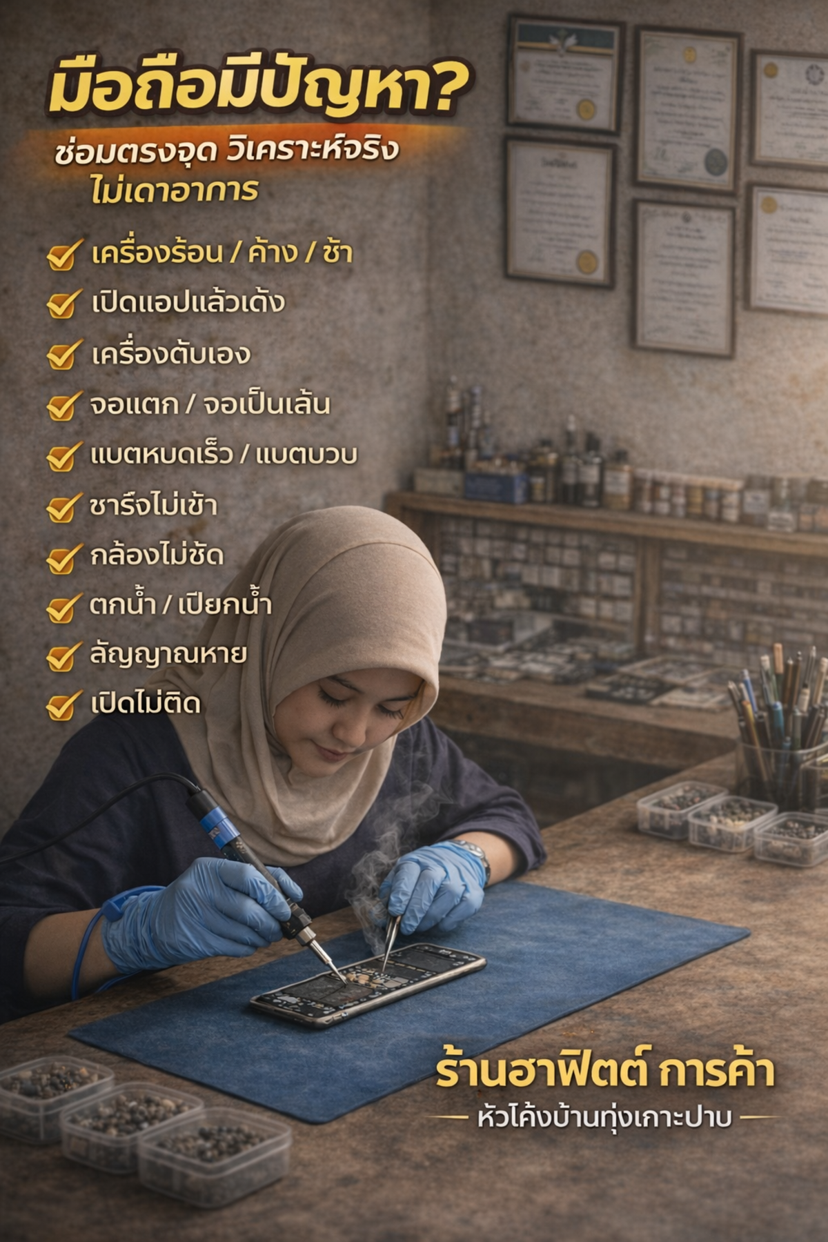 เราให้บริการในฐานะ ร้านซ่อมมือถือครบวงจรในสตูล ที่เน้นความเชื่อมั่น ความโปร่งใส และมาตรฐานงานซ่อม พร้อมเช็คอาการฟรี ประเมินราคาก่อนซ่อมทุกครั้ง ไม่ซ่อมเกินจำเป็น