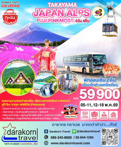 ทัวร์ญี่ปุ่น TAKAYAMA JAPAN ALPS FUJI PINKMOSS 7วัน 4คืน