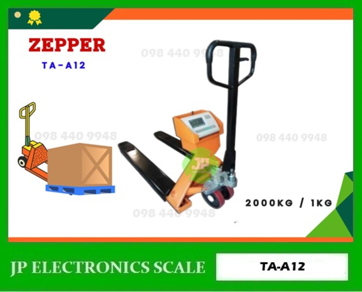 เครื่องชั่งรถยกพาเลท2000kg เครื่องชั่งแฮนด์พาเลท2ตัน เครื่องชั่งแฮนลิฟท์ เครื่องชั่งน้ำหนักสินค้ารถพาเลท เครื่องชั่งรถพาเลท 2ตัน ค่าความละเอียด 1kg ยี่ห้อ ZEPPER รุ่น TA-A12 (Hand Pallet Scale)