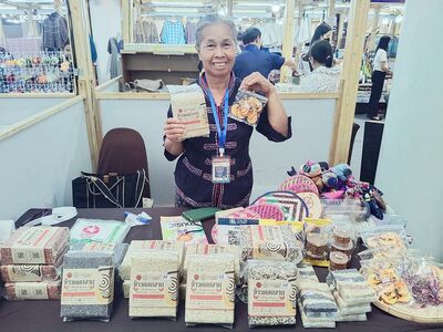 การจำหน่ายสินค้าอัตลักษณ์และสินค้าเด่นของผู้ประกอบการจังหวัดอุดรธานี จำนวน 40 คูหา อาทิ ผ้าไหม ผ้าหมี่ขิด เสื้อผ้าเครื่องแต่งกาย สมุนไพร เครื่องหนัง เครื่องประดับ และอาหารและเครื่องดื่ม เป็นต้น