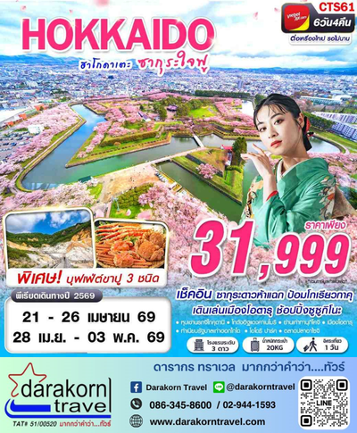 ทัวร์ญี่ปุ่น HOKAIDO SAKURA ฮาโกดาเตะ ซากุระใจฟู 6วัน 4คืน