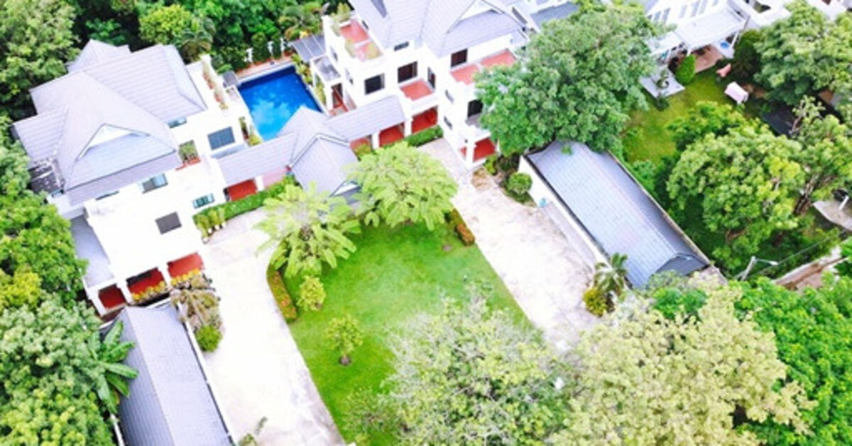 Ramintra 18-hole golf course Praserthmanukit Road NIDA. Soi SeriThai 51-61 Chocolate Ville 2.1km. 4bed3-story pool villa for rent 200sq.wah (1,200 sq.m) 64,999baht per month. 3bath with jacuzzi.