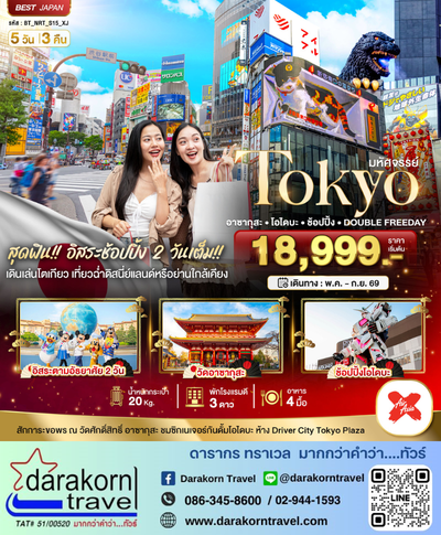 ทัวร์ญี่ปุ่น TOKYO อาซากุสะ โอไดบะ ช้อปปิ้ง DOUBLE FREEDAY 5วัน 3คืน