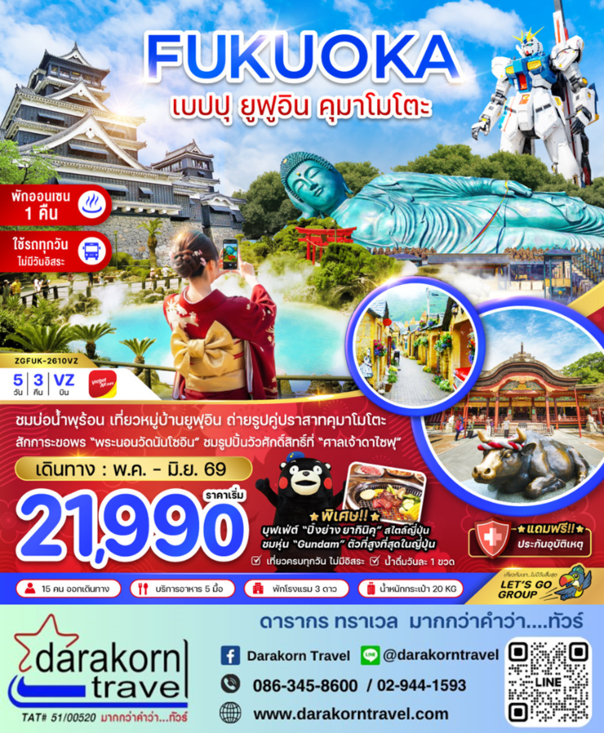 ทัวร์ญี่ปุ่น ฟุกุโอกะ เบปปุ ยูฟูอิน คุมาโมโตะ 5วัน3คืน